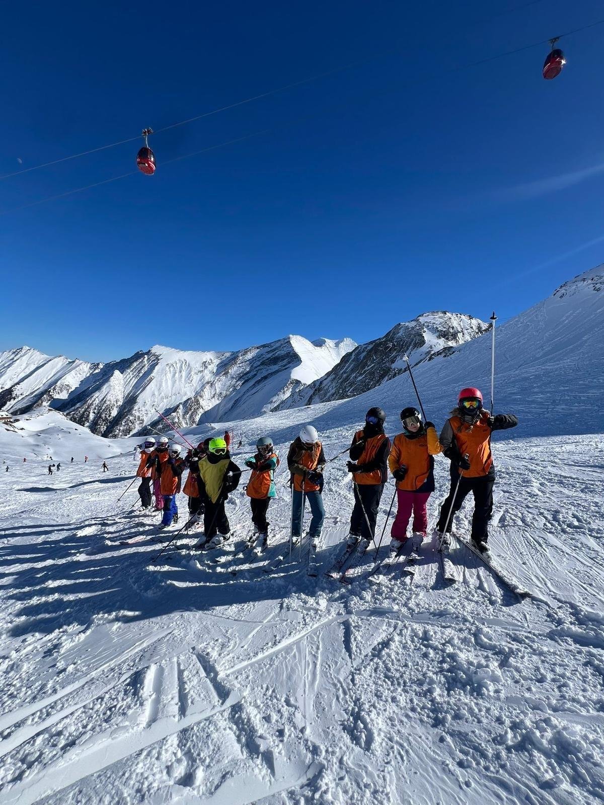 Také letos jsme zvolili Rakousko – tentokrát však ve ještě vyšších nadmořských výškách. První den jsme strávili na sjezdovkách v Zell am See (cca 2000 m n. m.), kde se žáci pod vedením lyžařských instruktorů rozdělili do čtyř skupin podle svých dovedností. V následujících dnech pak začátečníci i pokročilí pilovali techniku na ledovci v Kaprunu (cca 3000 m n. m.), jehož rozmanité a kvalitní sjezdovky nabízely stále nové možnosti. Velkým zážitkem pro mnohé byla také samotná jízda kabinovou lanovkou, která je vyvezla do vysokohorského prostředí s nádhernými výhledy. Program byl pestrý i ve večerních hodinách. Učitelé pro žáky připravili společenské večery plné her, soutěží a dalších aktivit, při nichž nechyběla dobrá nálada ani prostor pro společné sdílení zážitků z celého dne. Kaprun si žáci rychle oblíbili – a mnozí už teď doufají, že se tam příští rok znovu vrátí.