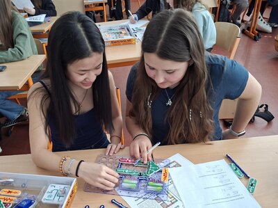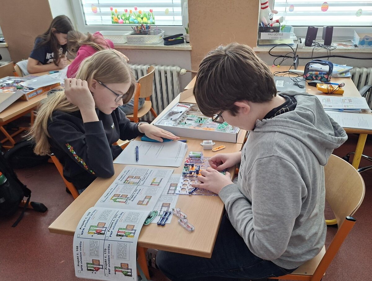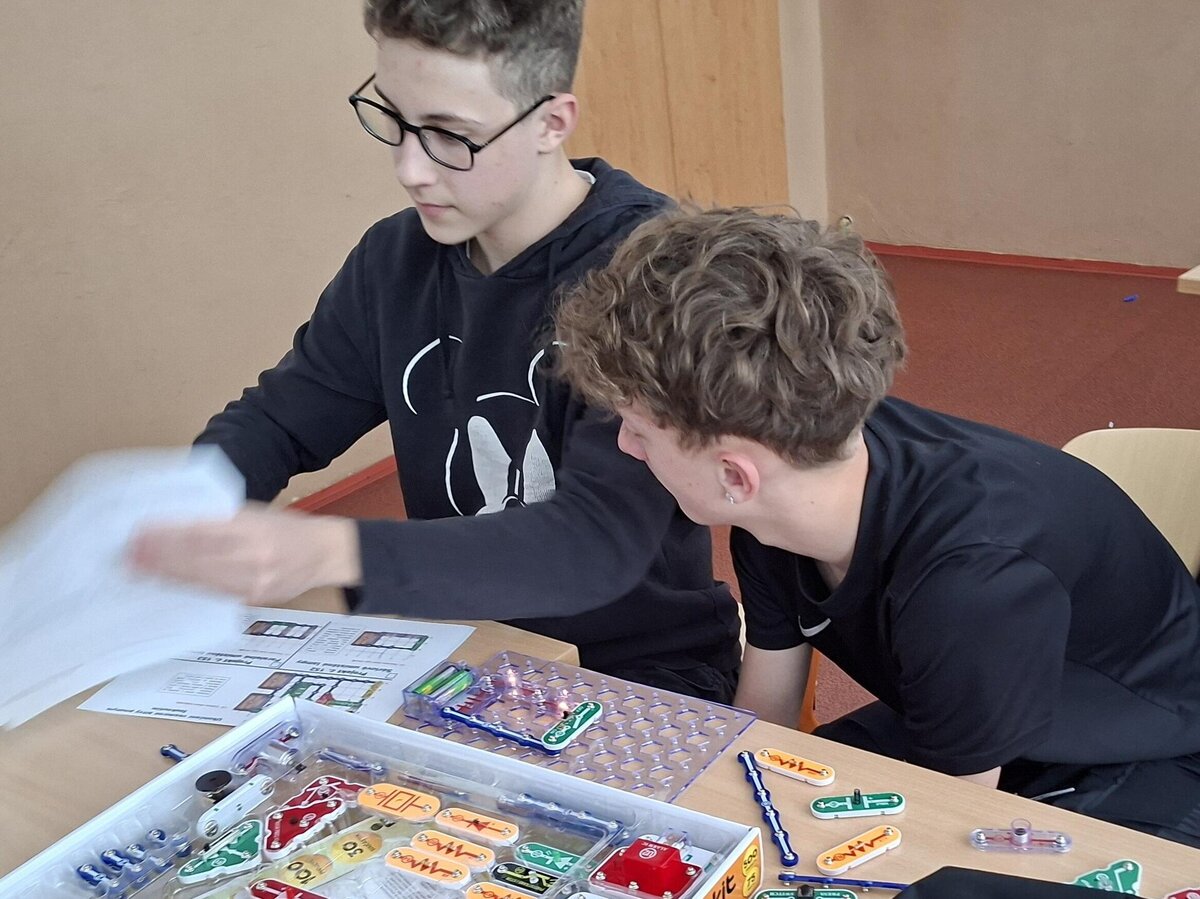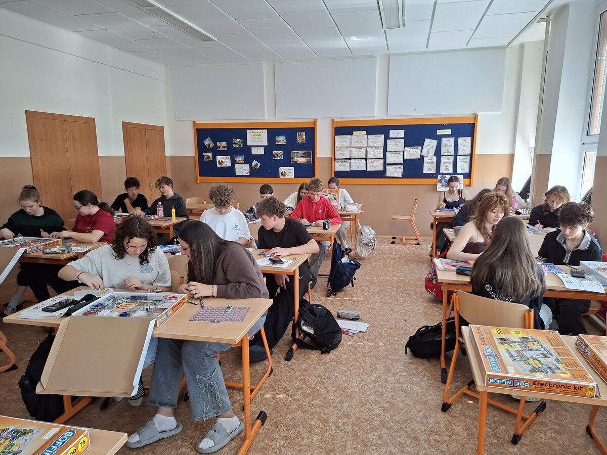 Žáci 8. tříd se pustili do praktické práce se stavebnicí Boffin a proměnili se v malé elektrotechniky. Ve dvojicích řešili zadané úkoly, zapojovali elektrické obvody a objevovali, jak funguje svět kolem nás – tentokrát pěkně „pod proudem“.