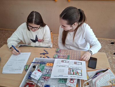 Nechyběla ani práce „tužkou na papíře“. Každá dvojice pečlivě zakreslila schéma svého obvodu a popsala jeho činnost. Žáci tak trénovali nejen technické dovednosti, ale i schopnost srozumitelně vysvětlit, jak jejich zapojení funguje.