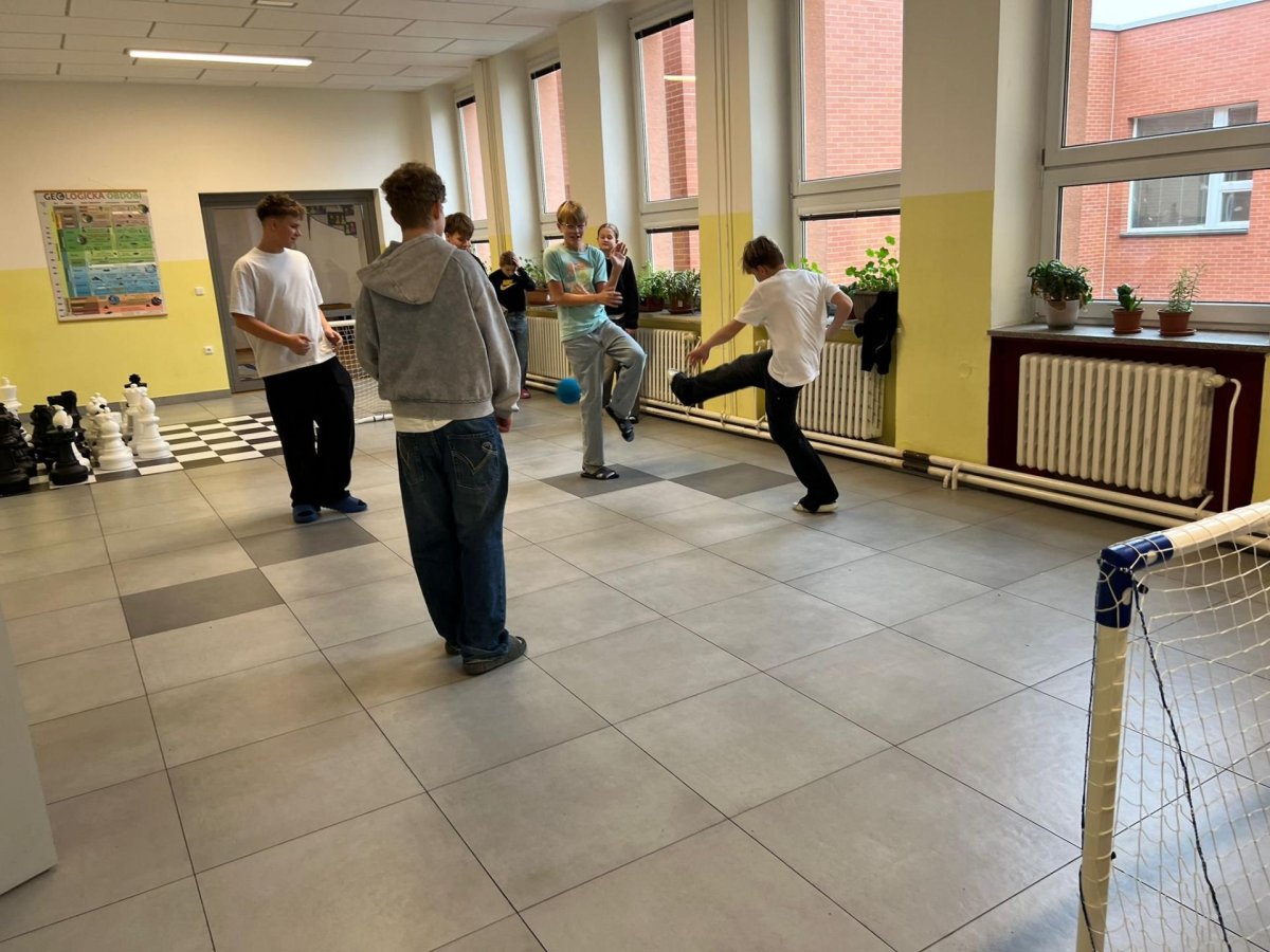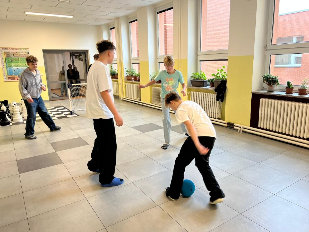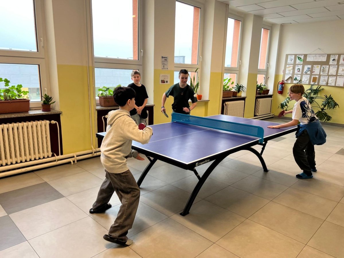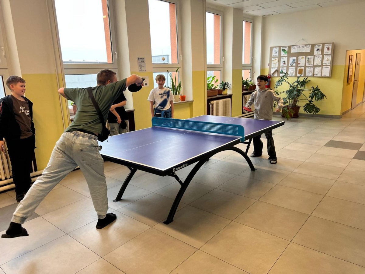 Chceme, aby naši žáci trávili přestávky aktivně a na mobil si ani nevzpomněli. Proto jsme školní chodby postupně vybavili herními a sportovními prvky, které mohou děti volně využívat během přestávek. K dispozici mají stoly pro stolní tenis, malé fotbalové branky, stolní fotbal, šachovnice i různé deskové a karetní hry. Tyto aktivity přirozeně lákají děti k pohybu, hře a vzájemné komunikaci.