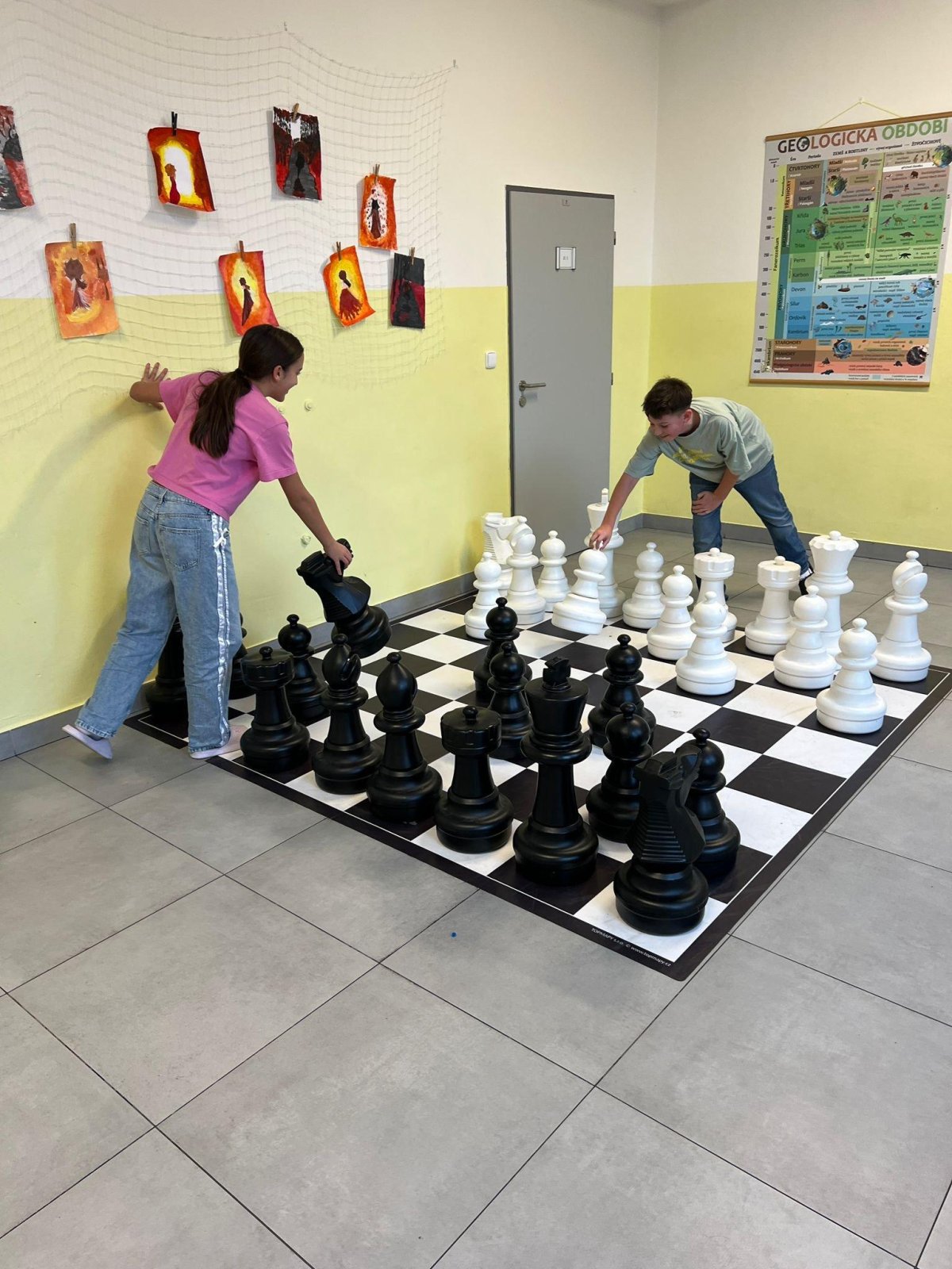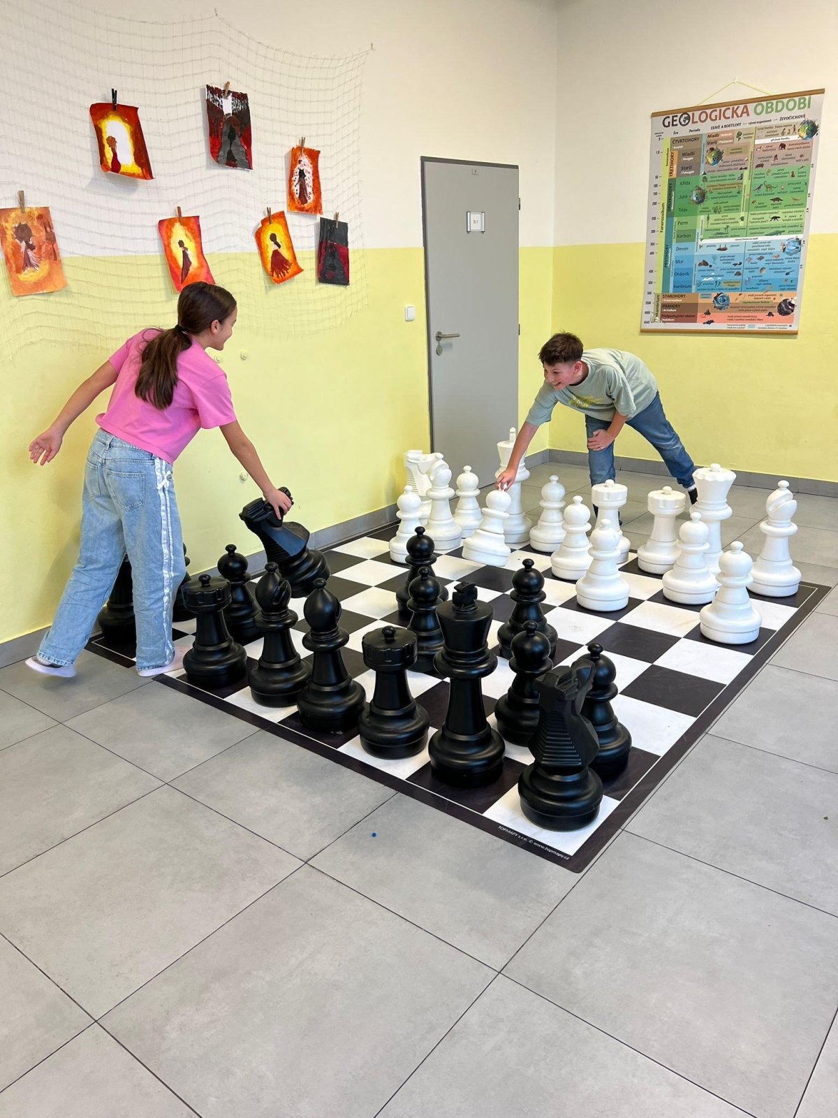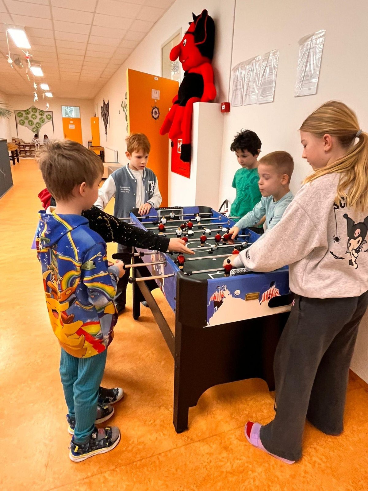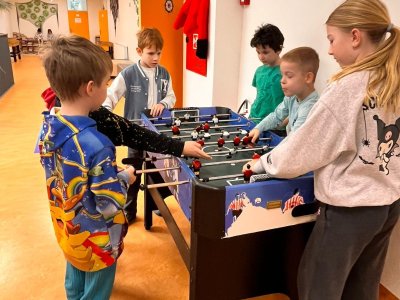 Chceme, aby naši žáci trávili přestávky aktivně a na mobil si ani nevzpomněli. Proto jsme školní chodby postupně vybavili herními a sportovními prvky, které mohou děti volně využívat během přestávek. K dispozici mají stoly pro stolní tenis, malé fotbalové branky, stolní fotbal, šachovnice i různé deskové a karetní hry. Tyto aktivity přirozeně lákají děti k pohybu, hře a vzájemné komunikaci.