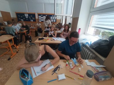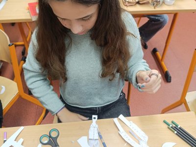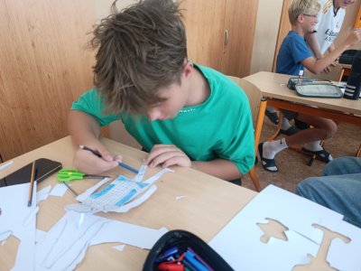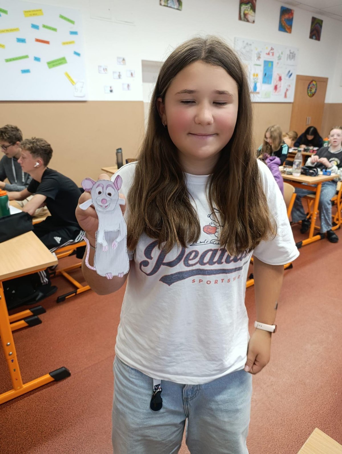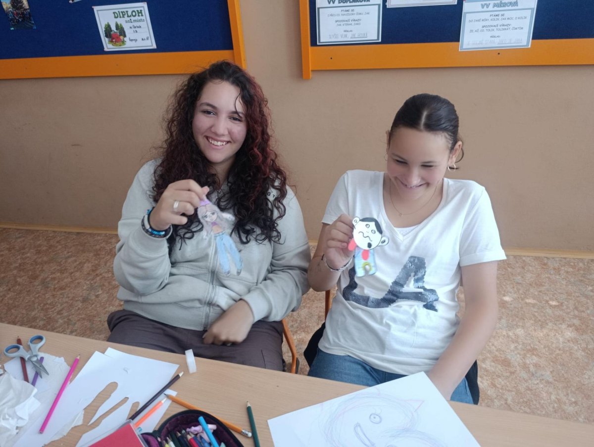 Největší výzvou bylo správně rozkreslit jednotlivé části těla tak, aby šly po sestavení skutečně rozhýbat. Žáci se učili pracovat s klouby, promýšleli proporce a zkoušeli, jak budou končetiny fungovat v pohybu. Nakonec své výtvory spojili papírovou trubičkou a s nadšením je předvedli spolužákům – loutky tak uměly hýbat rukama, nohama a mávat křídly.