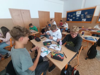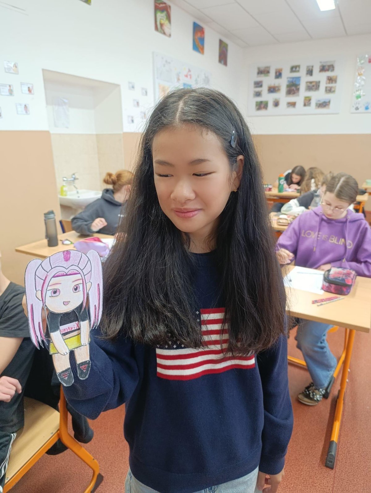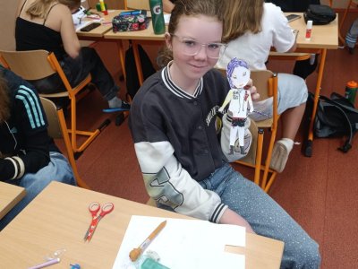 Výsledkem byla pestrá přehlídka originálních postav, kde se mísila fantazie, humor i inspirace světem anime. Žáci si vyzkoušeli, že i z obyčejného papíru může vzniknout malý kousek umění – stačí nápad, trpělivost a chuť tvořit.