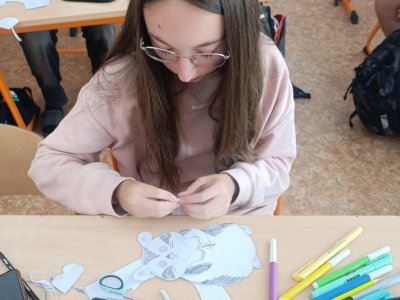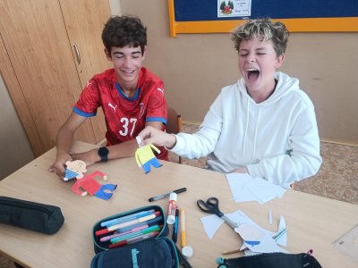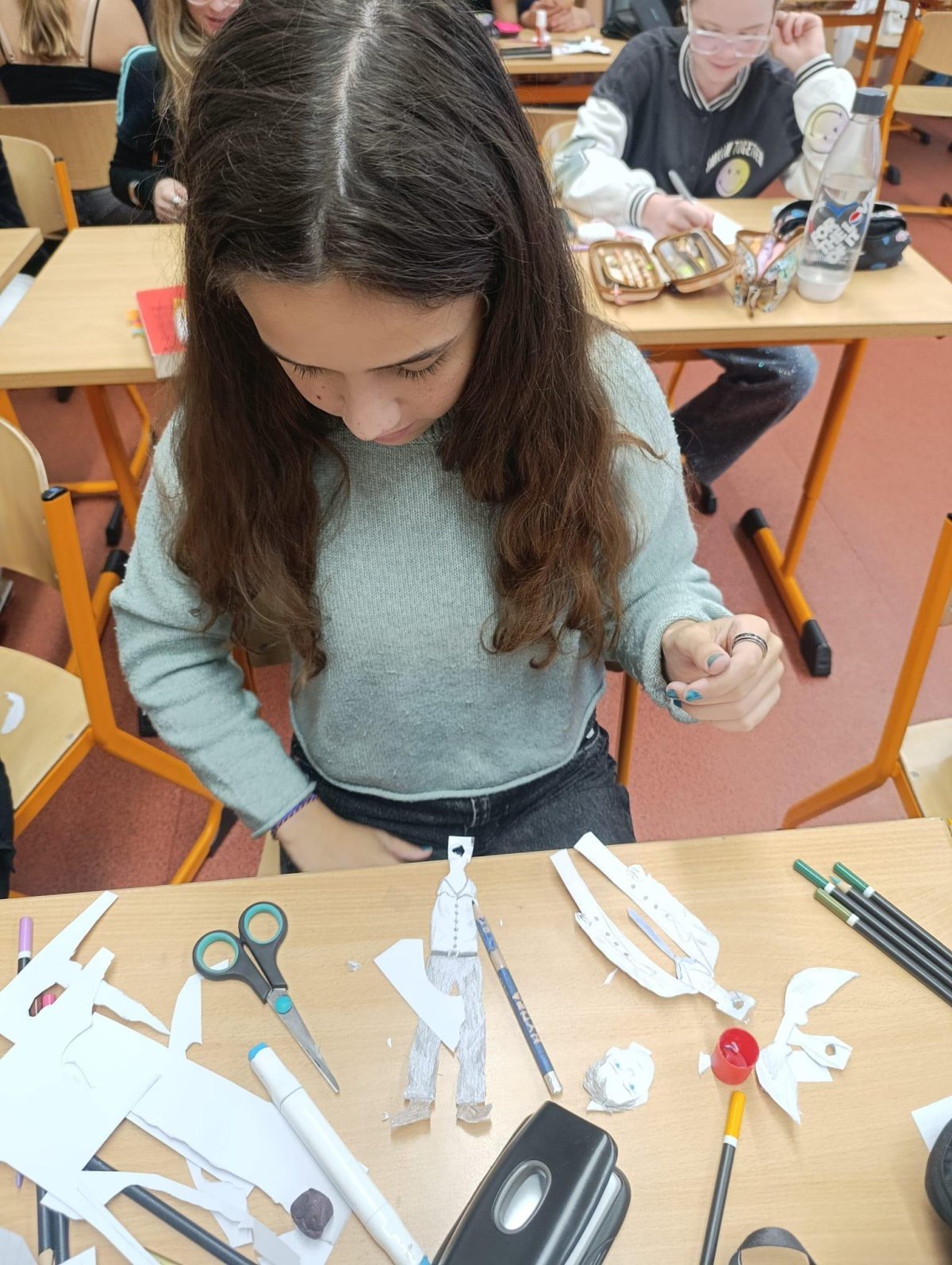 Na hodině výtvarné výchovy se žáci 8. tříd pustili do výroby papírových pohyblivých loutek.