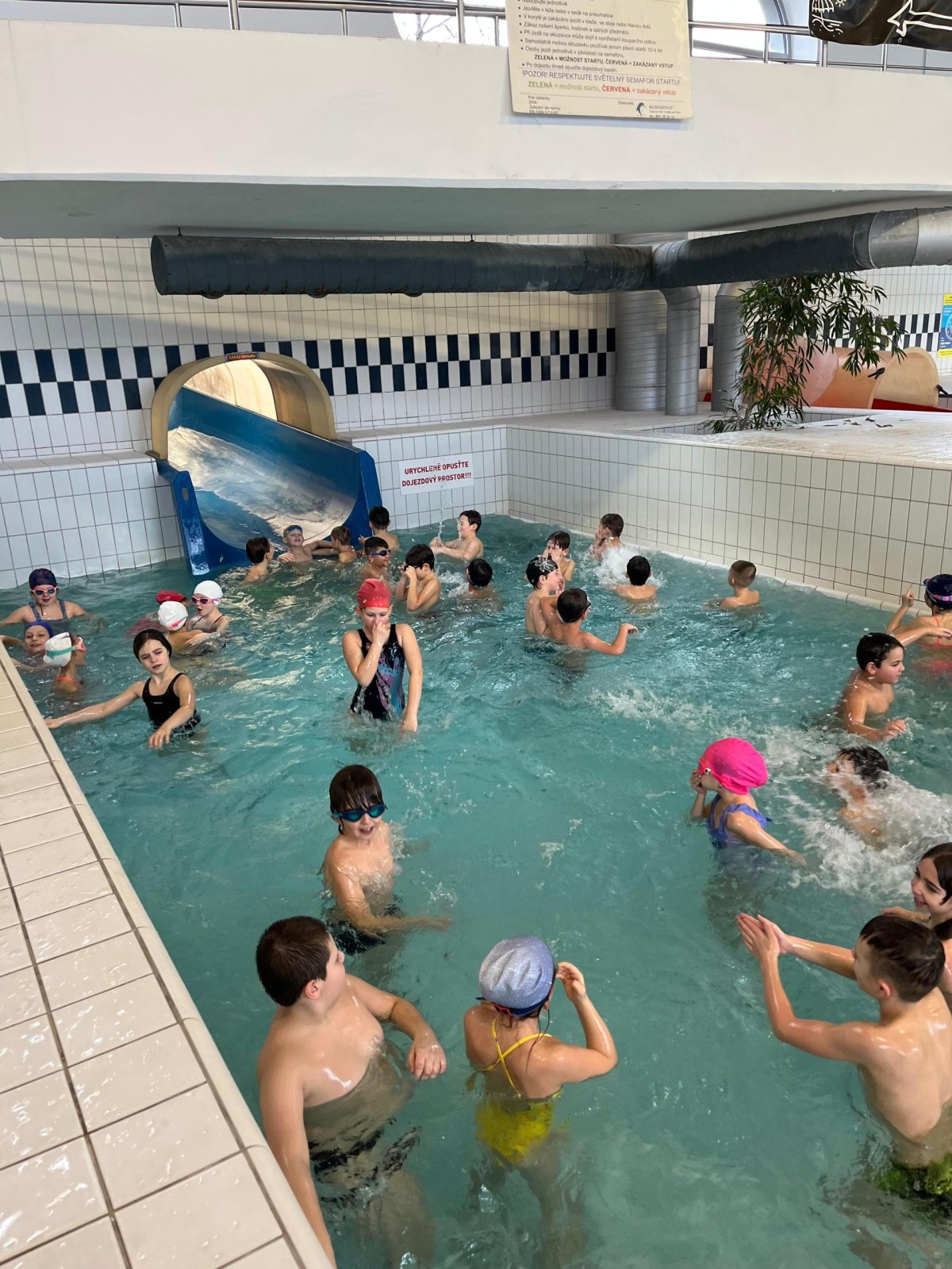 Během pravidelných lekcí si zdokonalovali plavecké styly, učili se správnému dýchání i bezpečnému pohybu ve vodě. Pro mnohé byl začátek velkou výzvou, ale díky podpoře instruktorů a vlastní vytrvalosti udělali obrovský pokrok. Každá lekce přinášela nové dovednosti i větší jistotu ve vodním prostředí. Na závěrečné hodině si žáci užili radostné dovádění na tobogánu a každý obdržel „mokré vysvědčení“ jako památku na své úspěchy a snahu během celého kurzu.