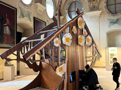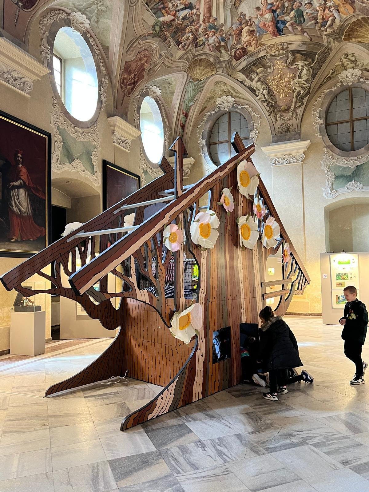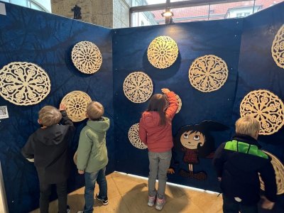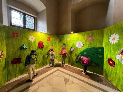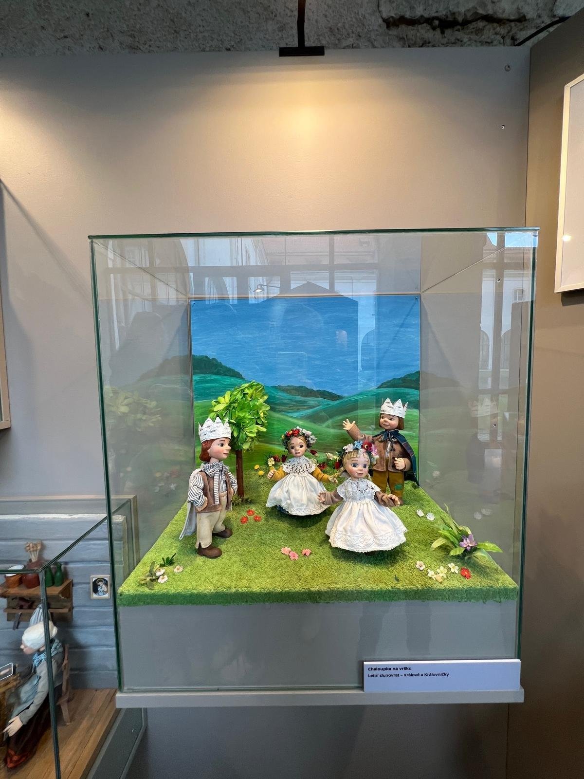Děti se hned po příchodu do kláštera ocitly ve světě pohádek, které znají z televizní obrazovky i z vyprávění rodičů a prarodičů. Společně jsme si připomněli slavné večerníčkové postavičky – Krtečka, Rákosníčka, Křemílka a Vochomůrku, Makovou panenku i Rumcajse. Děti s nadšením obdivovaly staré kresby, filmové ukázky i originální rekvizity z natáčení. Největší úspěch měl samozřejmě „Večerníček s čepicí z novin“, kterého jsme mohli pozdravit hned u vstupu.