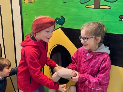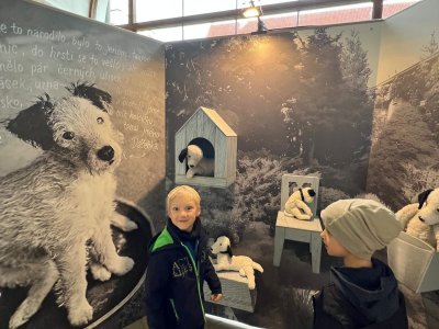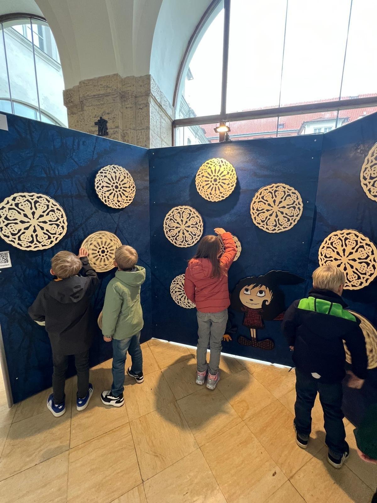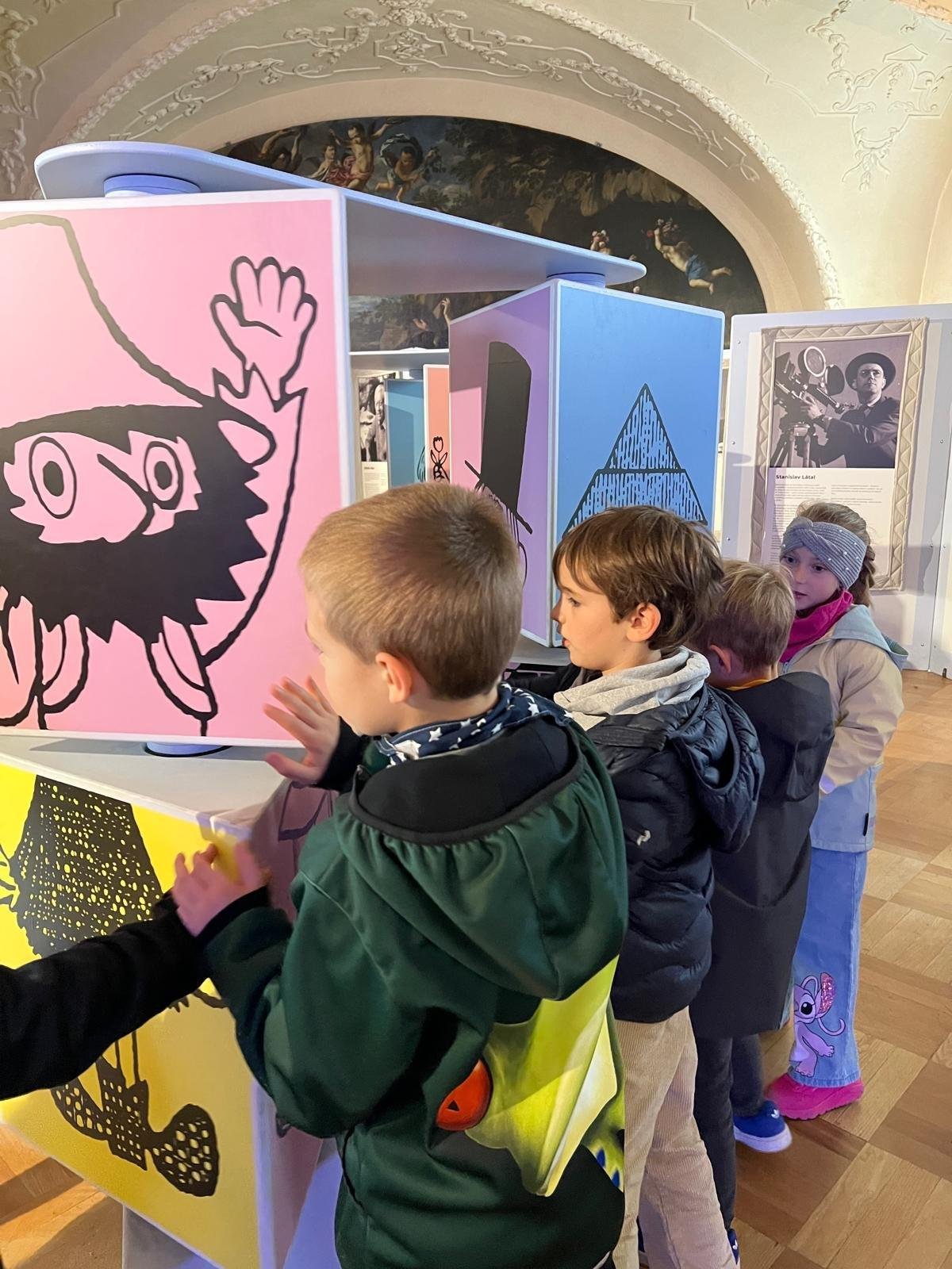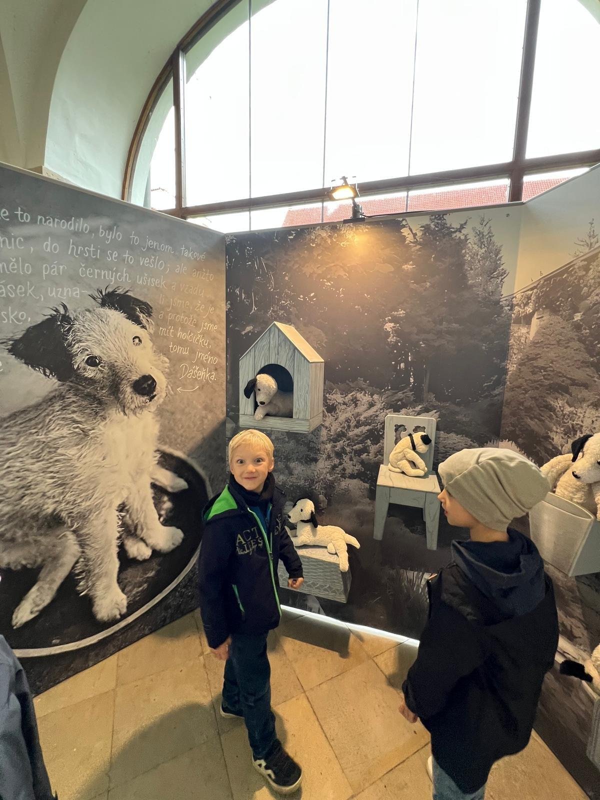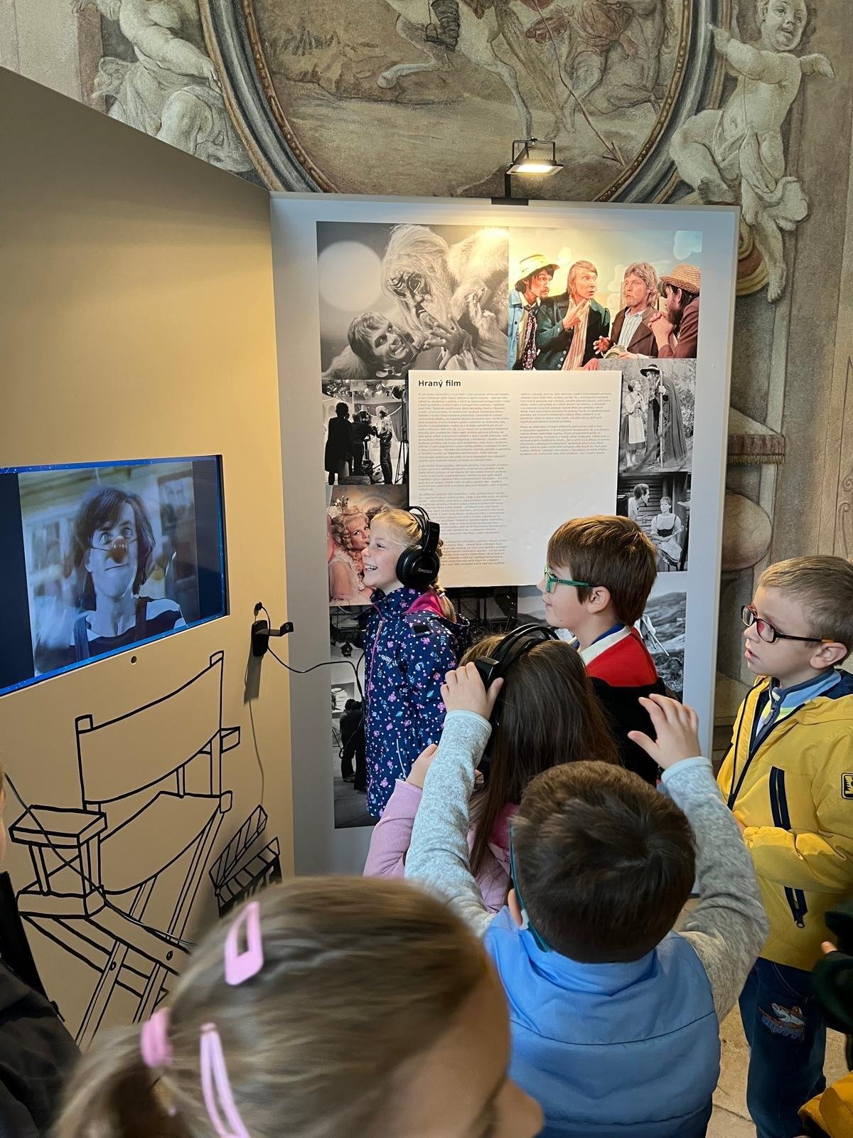 Kromě prohlídky si děti vyzkoušely také interaktivní část výstavy – skládaly obrázky, poslouchaly známé melodie z pohádek a hádaly, ke kterým hrdinům patří. Bylo úžasné pozorovat, s jakým zaujetím a radostí se zapojily.