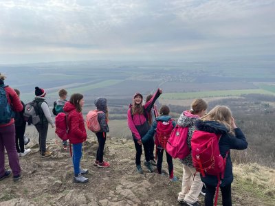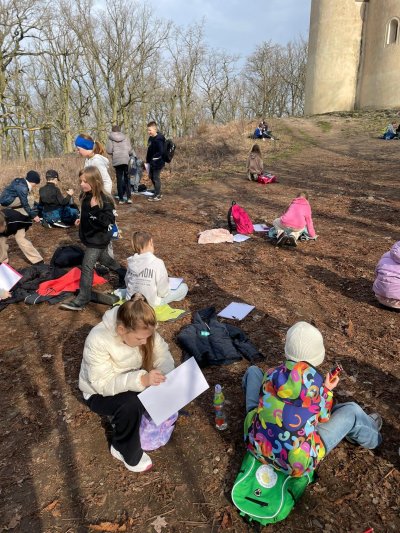 Cílem naší cesty byla hora Říp, která se svým významem skvěle hodila k propojení učiva ze zeměpisu, dějepisu i přírodopisu. Během výstupu děti vyplňovalypřipravený pracovní list, ve kterém plnily různé úlohysouvisející s místní krajinou i historií. Počasí nám přálo a celou dobu nás doprovázelo příjemné jarní sluníčko.