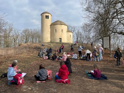 Po příchodu na vrchol si žáci prohlédli známou rotundusvatého Jiří a svatého Vojtěcha. Poté si ji vyzkoušeli také nakreslit. Z vrcholu jsme se vydali dolů po vyhlídkové trase, která nabídla krásné výhledy do širokého okolí. Výlet jsme zakončili společnou fotografií s praotcem Čechem a návratem zpět do školy, kde jsme již v době oběda mohli sdílet dojmy z příjemně stráveného dne. ??️