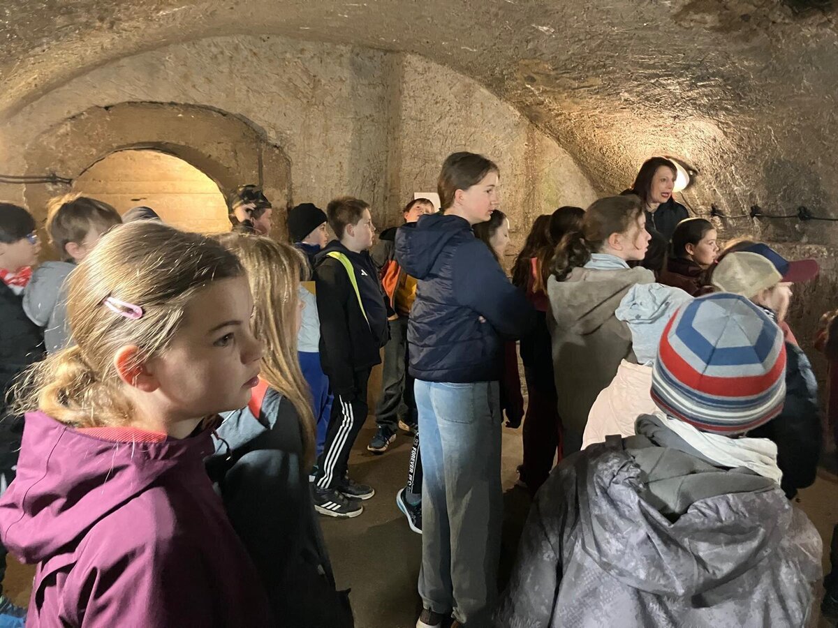 První zastávkou byla Jihlava, kde jsme navštívili známé Jihlavské podzemí. Během prohlídky se děti dozvěděly mnoho zajímavých informací o historii města i o tom, k čemu podzemní chodby v minulosti sloužily. Poté jsme vystoupali na městské hradby, kde jsme si vysvětlili, co znamená pojem parkán a jakou roli měl v obranném systému středověkého města.