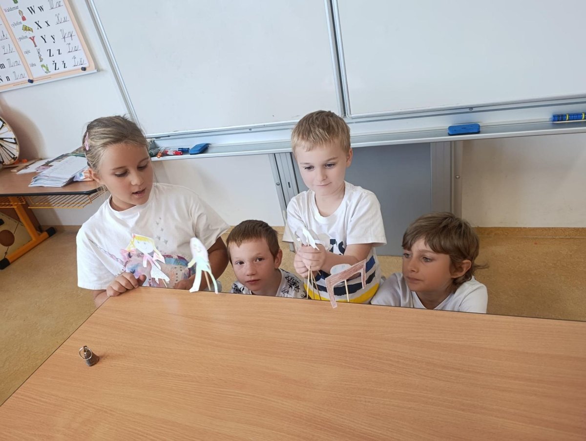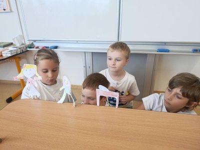 Nejdříve si každý žák vyrobil svou vlastní loutku z papíru a špejlí a poté se pustili do nacvičování známých pohádek. Postupně tak na malém „jevišti“ ožily příběhy O perníkové chaloupce, O Červené Karkulce, O Smolíčkovi, Hrnečku vař a O kůzlátkách. Děti se naučily nejen texty, ale také to, jak se s loutkou správně pohybovat a jak měnit hlas podle postavy. Celé vystoupení se moc povedlo a spolužáci i paní učitelky odměnili malé herce velkým potleskem. Všichni si tak odnesli nejen radost z úspěchu, ale i nový zážitek.